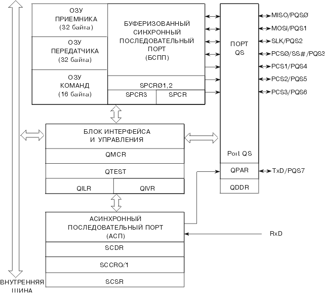 Модуль последовательного интерфейса QSMМодуль QSM (рис.3.13) содержит синхронный и асинхронный последовательный порты,