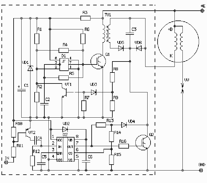 На сегодняшний день схем электронного зажигания существует множество. Выпускается также масса интегральных схем для серийного использования в автомобилях. Однако одна из проблем, присущих всем таким системам, полностью не решена до сих пор. Это проблема надежности. Многие автолюбители знают, что вывести систему зажигания из строя может оборвавшийся со свечи высоковольтный провод. Оконечный силовой каскад, а это неотъемлемая часть подобных устройств, работает в очень напряженном электрическом и тепловом режиме. Ни полевые, ни тем более биполярные транзисторы не способны дать гарантию безотказной работы во всех режимах, особенно аварийных. IGBT транзисторMOSFET транзисторы, появившиеся в 80-х годах, имели характеристики, близкие к характеристикам идеального ключа и являлись наиболее популярными ключевыми элементами. Однако оказалось, что главным параметром, ограничивающим область их применения, является напряжение стока. Высоковольтных МОП - транзисторов с достаточно хорошими характеристиками создать пока не удается, так как сопротивление открытого МОП ПТ растет пропорционально квадрату пробивного напряжения. Кристаллы высоковольтных МОП ПТ имеют большую площадь и, соответственно, большую стоимость чем у биполярных транзисторов. Справедливости ради надо сказать, что многие фирмы продолжают работать над созданием высоковольтных полевых транзисторов. В частности IXYS выпускает транзисторы по BIMOSFET технологии, рассчитанные на напряжение до 1600В. Однако напряжение насыщения у них составляет 7В, соответственно и рассеиваемая на них мощность оказывается недопустимо большой. В середине 80-х г.г., возникла идея создания биполярного транзистора с МОП - управлением, названного IGBT - Insulated Gate Bipolar Transistor. В 90-91 г.г. в каталогах ряда фирм (среди которых одной из первых была фирма International Rectifier) появились транзисторы IGBT. С тех пор практически все ведущие производители мощных полупроводниковых приборов изготавливают эти транзисторы. IGBT представляет собой PNP транзистор, управляемый от сравнительно низковольтного МОП транзистора с индуцированным каналом через высоковольтный N-канальный полевой транзистор. Новая технология позволила соединить в одном элементе достоинства полевых и биполярных транзисторов. У IGBT практически отсутствуют входные токи, они имеет отличные динамические характеристики, не уступающие MOSFET. В то же время потери у них растут пропорционально току, а не квадрату тока, как у полевых транзисторов. Максимальное напряжение IGBT ограничено только технологическим пробоем, и уже сегодня выпускаются транзисторы с рабочим напряжением до 2000В. При этом напряжение насыщения у них не превышает 2-3В в рабочих режимах. Основным недостатком IGBT транзисторов пока остаются динамические потери, что снижает допустимый ток коллектора на частотах выше 10кГц. Однако для силовых каскадов блоков электронного зажигания, где рабочие частоты не превышают (200-300)Гц, на сегодняшний день транзисторы IGBT подходят более других элементов.