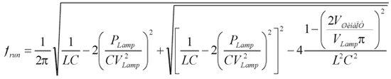 Частота в рабочем режиме такова, что лампа работает в режиме номинальной мощности, рекомендованной производителем. Рабочая частота резонансного выходного каскада лампы при выбранных номиналах элементов определяется выражением