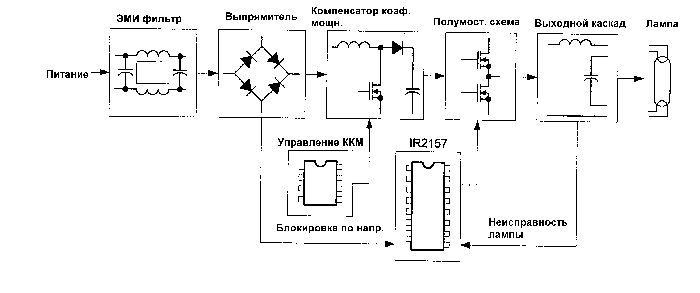 Блок-схема электронного балластаЭлектрические характеристики