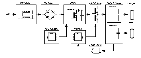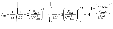 На протяжении работы балласта в режиме поджига, С12 заряжается значительно медленней, чем С20, результирующее напряжение на базе Q1 возрастает после зажигания на величину, определяемую параллельно соединенным резистором R51. Он устанавливает окончательную частоту схемы, когда лампа питается на рекомендованном изготовителем уровне мощности. Рабочая частота лампового резонансного выходного каскада определяется как