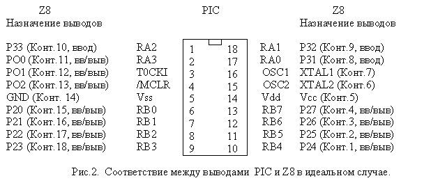 Таблица 2. Соответствие выводов PIC и Z8 (идеальный случай)
